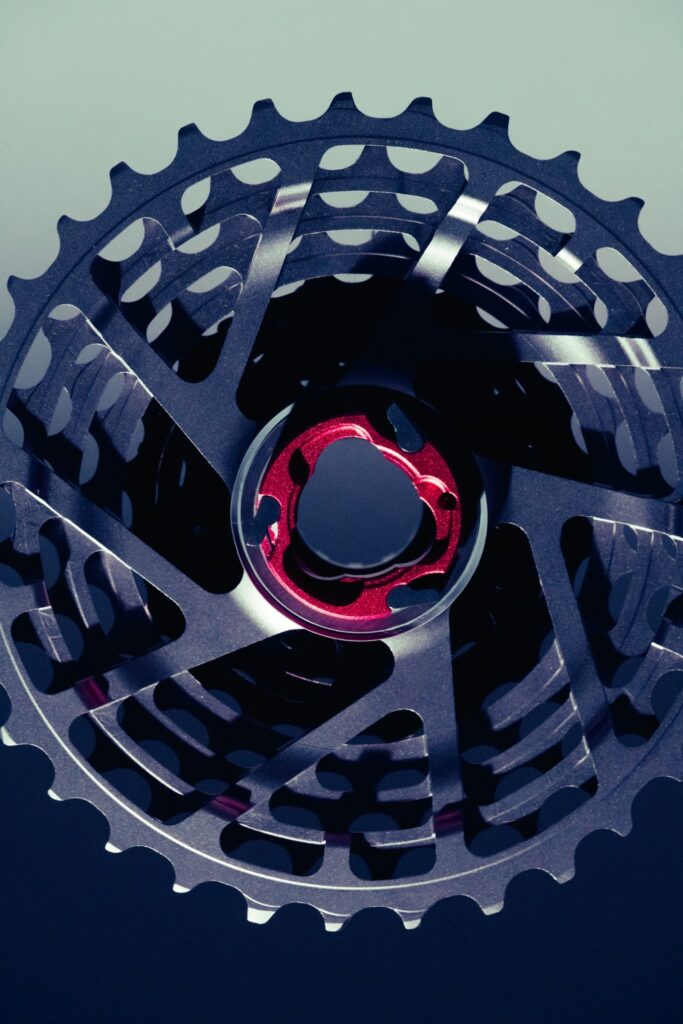 La cassette Ultra 13 intègre quatre à cinq plus grands pignons en titane aéronautique, usinés dans un monobloc. L’option vise un double bénéfice :