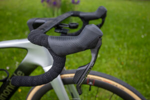 Esthétiquement, le groupe SRAM RED AXS XPLR est une œuvre d’art industrielle. Ses manettes sculptées, son pédalier ajouré et sa finition noir mat/carbone confèrent au Synapse LAB71 une allure racée, minimaliste, élégante.