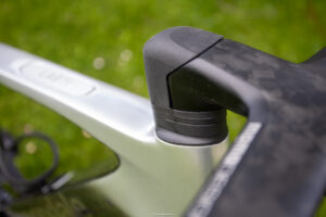 Tige de selle : offset variable selon les tailles (0 mm en 44-48 cm, 15 mm en 51-61 cm), garantissant un fit optimal sans devoir bricoler la position. L’intégration ne se fait donc pas au détriment de l’ergonomie. Le cache de sortie de tige de selle est sobre, discret et offre au design une finition poussée.