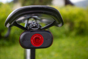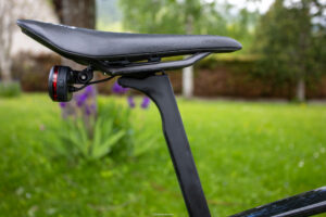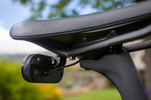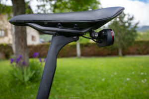 - Un Radar Garmin Varia eRTL sous la selle à l’arrière avec phare LightSkin à l’avant (jusqu’à 800 lumens),