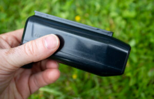 Elle possède une petite lumière qui éclaire le StashPort dès qu’on ouvre celui-ci. Cette lumière pourra d’ailleurs servir à éclairer vos manipulations de nuit si besoin en sortant la batterie. Notez d’ailleurs que la trappe d’ouverture est super facile à fixer ou ouvrir. Un régal sous le porte-bidon.