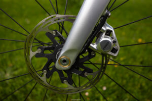 Le dégagement généreux (48 mm à l’avant, 42 mm à l’arrière, avec 4 mm de jeu de chaque côté) permet une vraie polyvalence. En test, le vélo s’est montré à l’aise sur routes secondaires, pistes roulantes ou voies douces. Sa géométrie reste typée route mais accepte volontiers l’aventure. Il peut devenir un compagnon idéal pour le Commuting rapide, les brevets randonneurs ou le bikepacking léger.