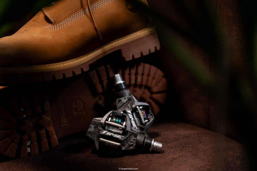 Le standard 2 trous est la référence en Gravel. Ce ne sont rien de plus que des pédales VTT. Les cales sont encastrées dans la semelle. Cela facilite la marche et l’évacuation de la boue. SPD est le plus répandu et largement compatible avec les chaussures Gravel. D’autre part, Time ATAC et Crankbrothers se distinguent par une excellente tolérance à l’encrassement et un enclenchement intuitif, utiles en terrains humides ou argileux. Les plateformes élargies stabilisent le pied et réduisent la fatigue. Elles restent tout de même raisonnables en poids.