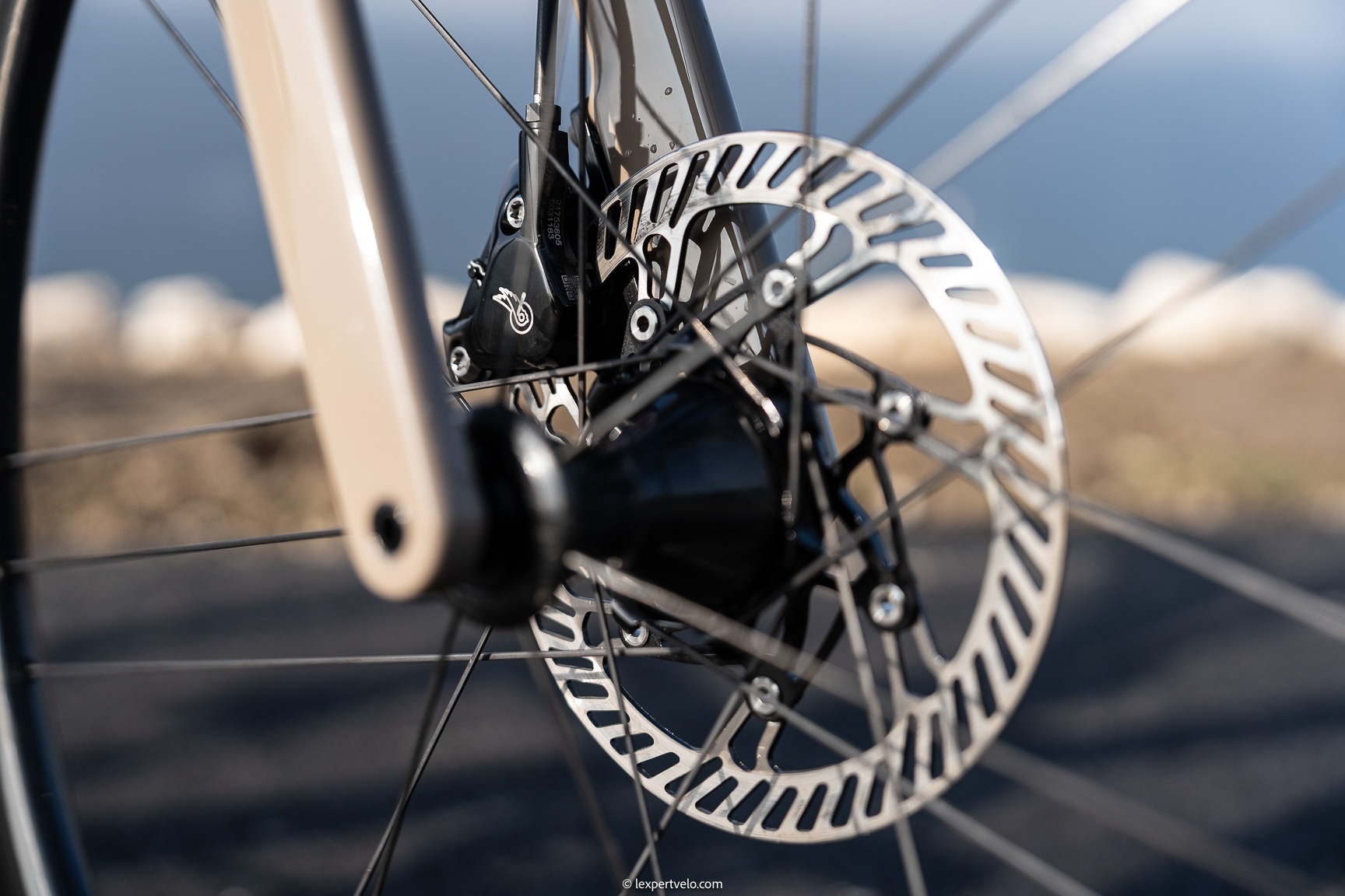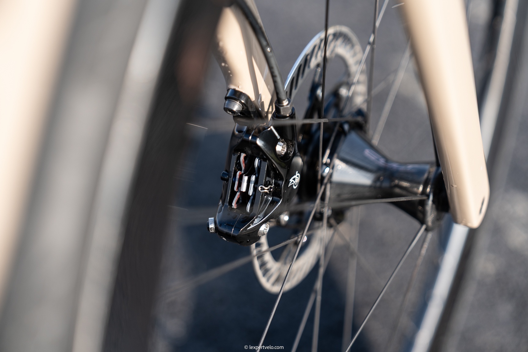 - L’étrier adopte le standard Flat Mount route afin d’optimiser la rigidité et l’intégration sur les cadres et fourches modernes.
