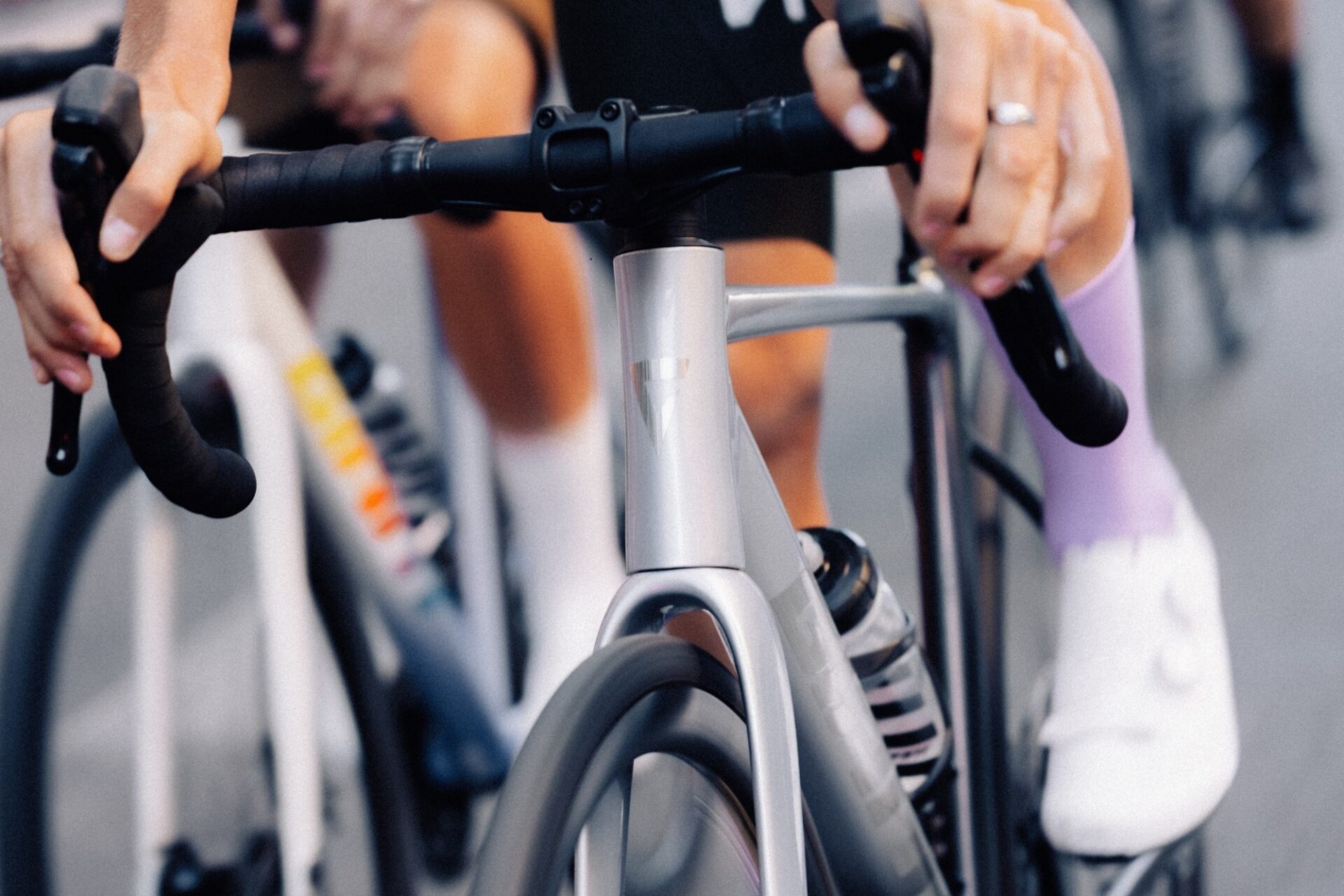Le Contend SL adopte une semi-intégration de la câblerie. Les gaines et durites cheminent dans un canal sous la potence avant d’entrer dans la douille, puis dans le tube diagonal jusqu’au boîtier de pédalier. Ce choix réduit la traînée par rapport à un routage externe, tout en simplifiant l’assemblage et la maintenance par rapport à une intégration totale. Visuellement, l’avant du vélo gagne en propreté, et le flux d’air apprécie l’absence de ruptures majeures autour du poste de pilotage.