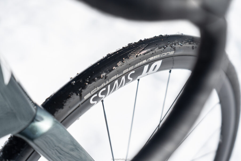 Couplées aux pneus Schwalbe One Performance TLE en 32-622, RaceGuard et MicroSkin, elles définissent le ressenti : le vélo filtre très bien et autorise des pressions optimisées. Cela améliore aussi l’adhérence et réduit la fatigue sur les revêtements rugueux. C’est un montage qui privilégie la robustesse et la cohérence tarifaire.