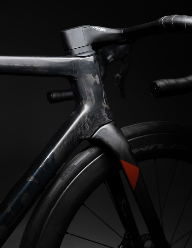 - La finition KG Edition reprend des motifs tricolores et des accents argentés sur un carbone apparent, en hommage au KG86 vainqueur du Tour de France.