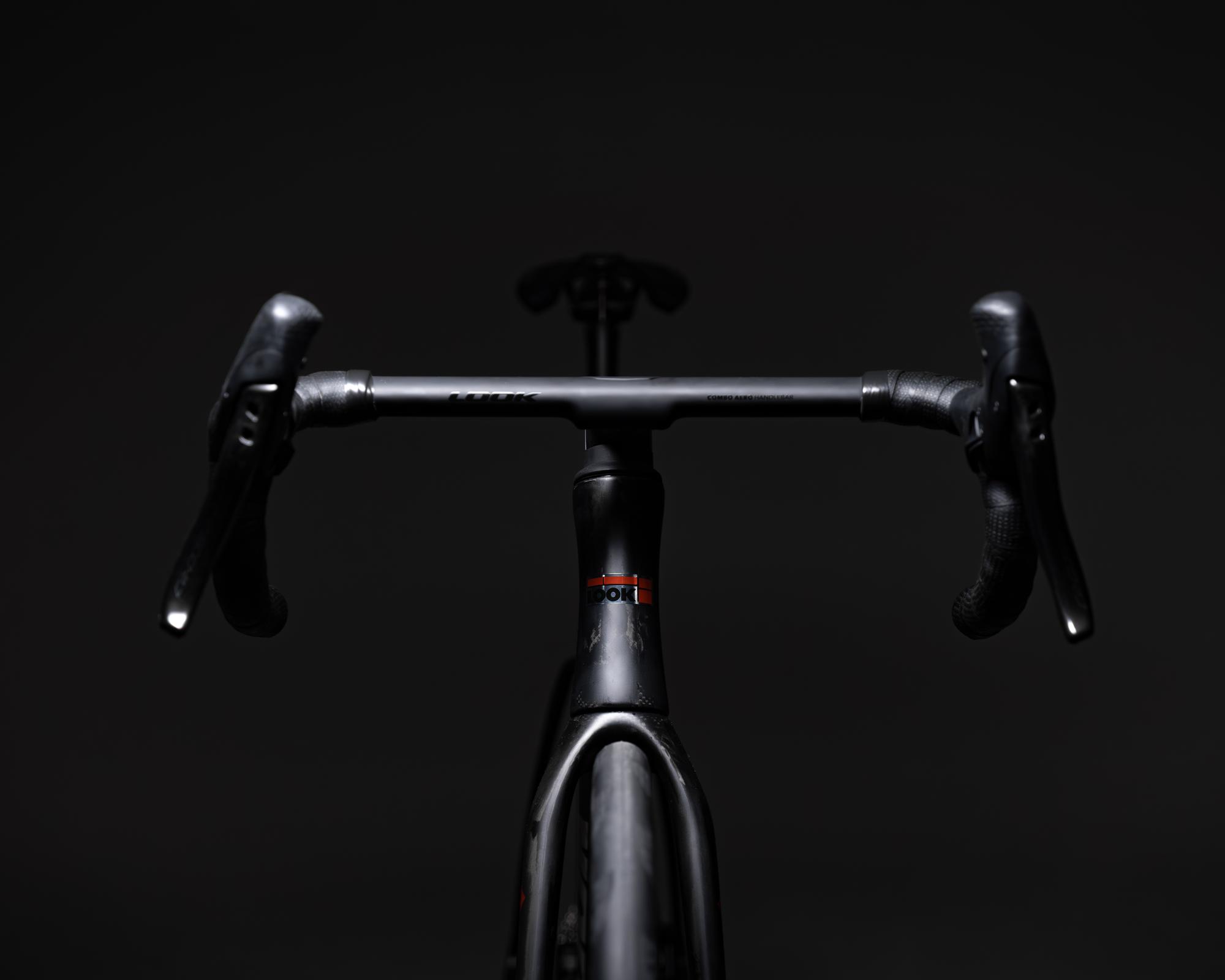 - Le cockpit tout carbone, composé d’une potence et d’un cintre séparés, assure une intégration complète des câbles tout en préservant la modularité des réglages.