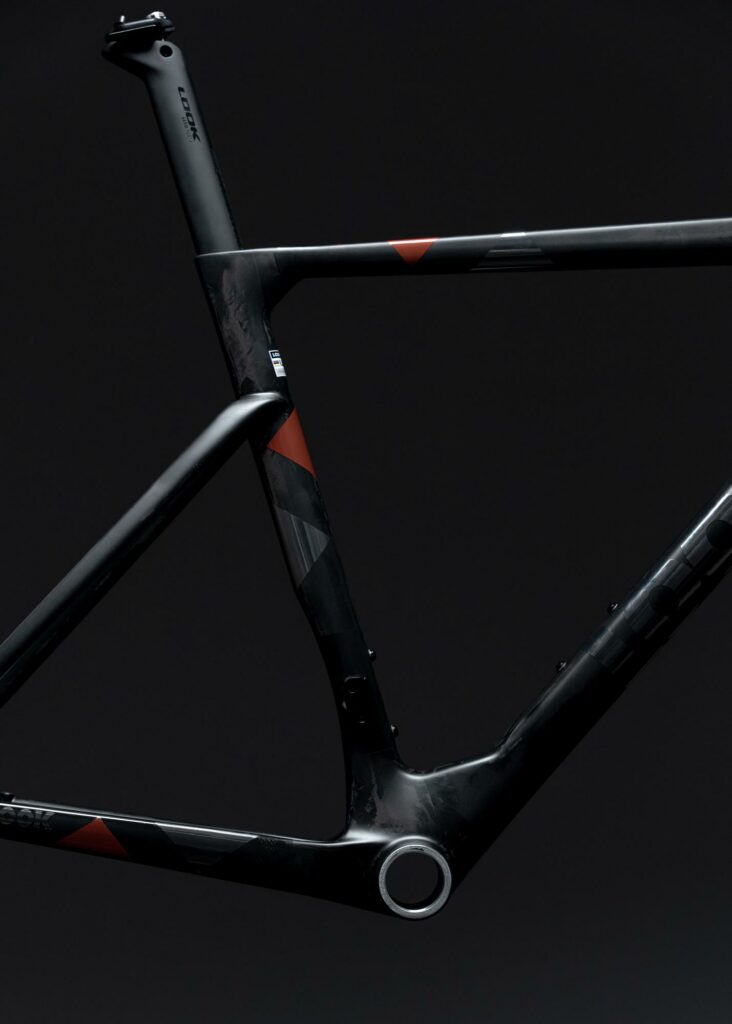 LOOK annonce 905 g pour le cadre (taille S) et 425 g pour la fourche, des valeurs qui situent le châssis dans la zone typique des plateformes aéro contemporaines orientées compétition. Ce niveau de masse vise un équilibre entre inertie contenue dans les relances et rigidité structurelle suffisante pour convertir la puissance sans déformation parasite. Sur le terrain, on peut attendre un comportement où les accélérations à partir d’allures déjà élevées restent le point fort, avec une conservation de la vitesse favorisée par la réduction de traînée.