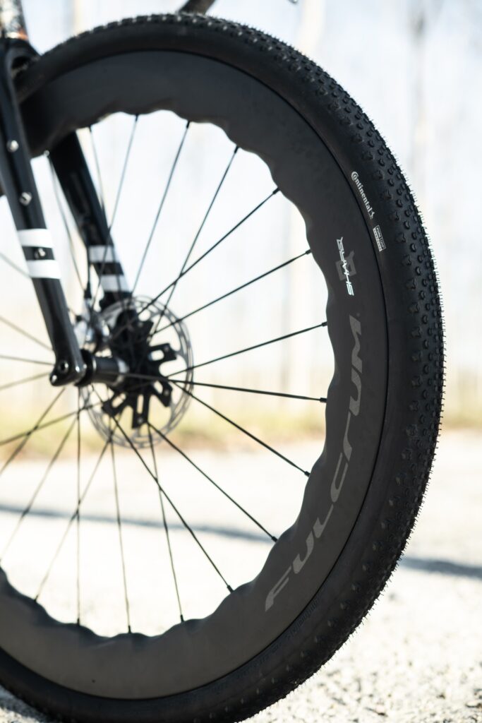 Le dégagement annoncé à 50 mm à l’avant et à l’arrière ouvre un champ d’usage très large. En pneus de 38 à 42 mm, on exploite pleinement la nervosité du châssis pour un gravel de vitesse, proche des sensations d’un route aéro assagi. En 45 à 50 mm, on gagne en accroche et en confort sur terrains plus dégradés, avec une motricité supérieure dans le cailloux ou l’herbe humide. Cette latitude permet de faire varier le comportement du vélo d’une sortie à l’autre sans changer de cadre ni de roues.