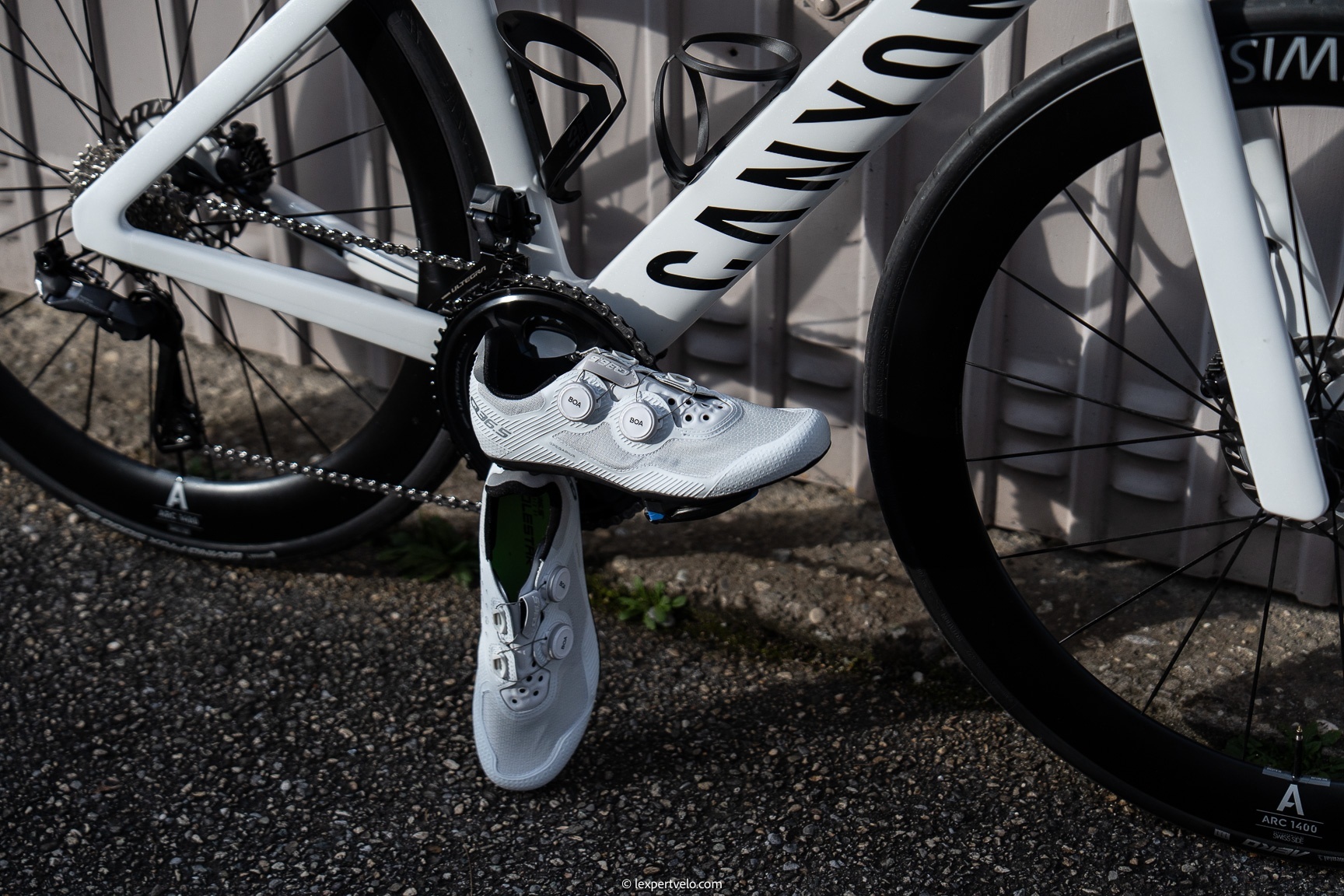 Ce maintien, toutefois, s’exprime davantage par zones que par un enveloppement uniforme. Le pied est guidé et tenu là où cela compte, mais le ressenti n’est pas totalement “invisible”. Pour de nombreux cyclistes, ce choix technique offre une sensation de sécurité et de contrôle. Pour d’autres, notamment ceux habitués à des chaussures réputées neutres, la présence de la structure se fera plus sentir au début.