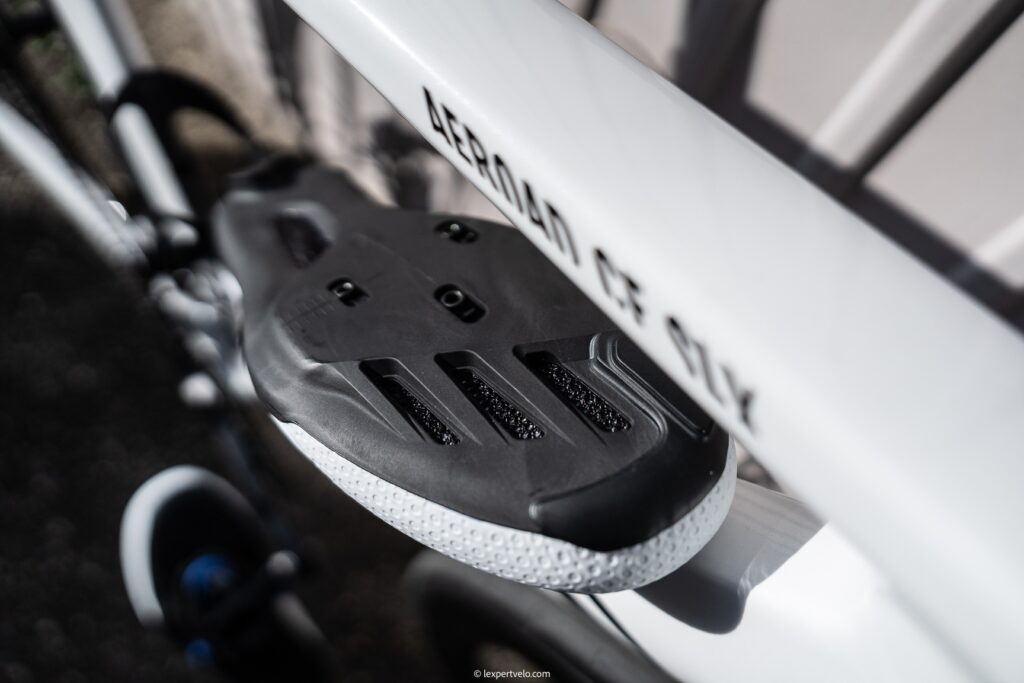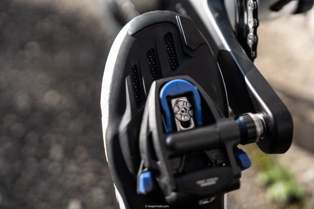 Un point plus subtil apparaît au pédalage : l’appui semble légèrement orienté vers l’extérieur du pied. La chaussure guide la trajectoire du pied plutôt que de se contenter d’accompagner une foulée totalement neutre. Beaucoup de cyclistes n’y verront pas d’inconvénient.