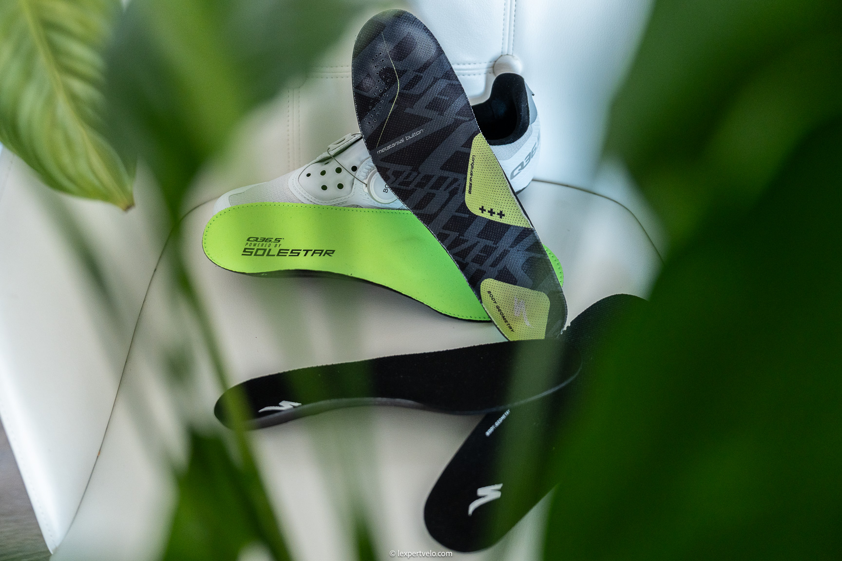 Un pied plat a besoin d’un soutien marqué : une Specialized Body Geometry rouge ou une G8 réglée avec une voûte basse à moyenne stabilisent l’arche et limitent l’affaissement.