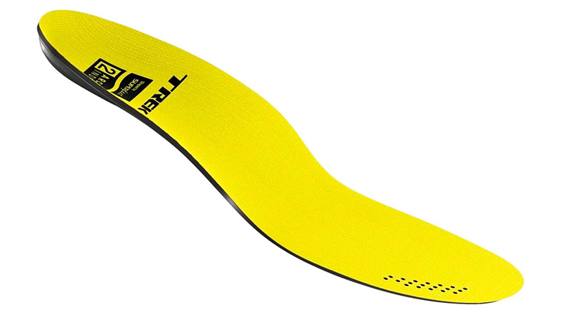 Les semelles vélo route Trek, issues de l’écosystème Bontrager et du programme Trek Precision Fit, s’inscrivent dans une logique de stabilité globale et d’alignement articulaire. L’objectif n’est pas la rigidité maximale, mais une base suffisamment structurée pour limiter l’effondrement de la voûte plantaire et guider le pied dans l’axe.