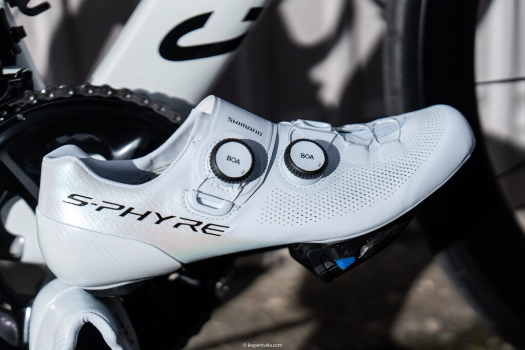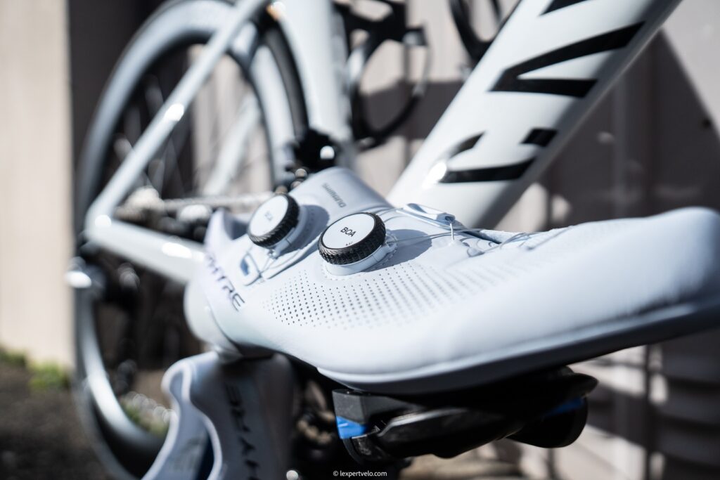 La Shimano S-Phyre RC903 présente une finition nette et un design sobre orienté performance. Les matériaux, la précision d’assemblage et l’intégration des disques BOA confirment le positionnement premium. La chaussure ne cherche pas l’effet spectaculaire ; elle mise sur la rigueur fonctionnelle et la cohérence.