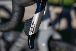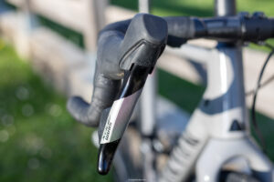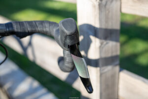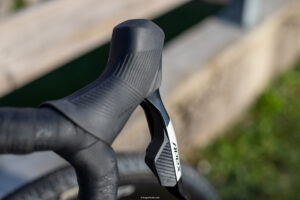 Les leviers Apex AXS intègrent la logique eTap : un bouton à droite pour descendre les rapports, un à gauche pour les monter. Hérités des groupes Force et Rival, ils offrent une excellente ergonomie avec des leviers compacts, texturées pour assurer une bonne adhérence, même sous la pluie.