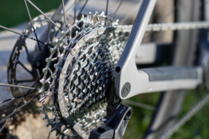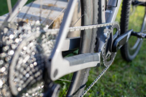 Ce montage dit « mullet » permet d’envisager le Gravel avec plus de dénivelé ou le bikepacking lourd sans compromis sur les développements.