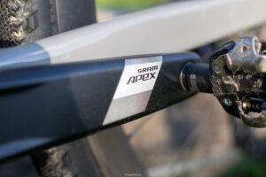 Le pédalier Apex 1 Wide se concentre sur l’efficacité du mono-plateau X-SYNC, avec une ligne de chaîne élargie pour accueillir des pneus jusqu’à 50 mm.