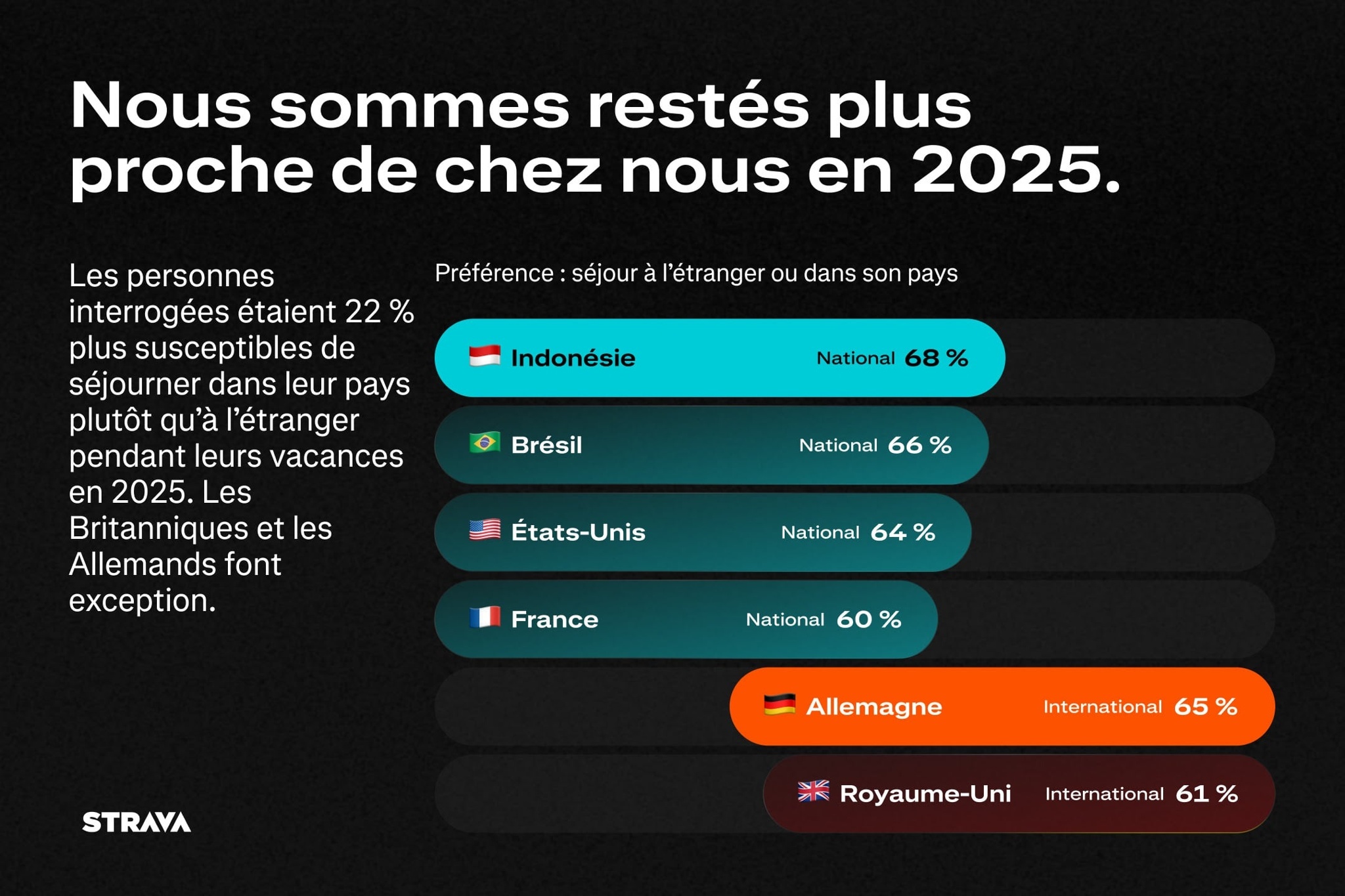 En 2025, les voyageurs sont restés 22 % plus susceptibles de se déplacer dans leur pays qu’à l’étranger, même si Britanniques et Allemands ont continué à partir loin. Quand les déplacements ont eu lieu, la neige et les sommets ont dominé (sports d’hiver 65 %, randonnée 58 %, sports nautiques 48 %).